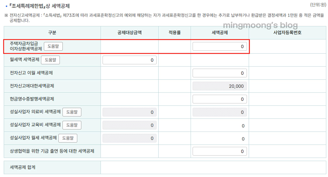 다음으로 주택자금 과다공제를 하였다면 금액을 '0'으로 수정해주셔야합니다.