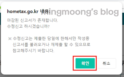 기존에 연말정산 또는 종합소득세 신고를 하였다면 마감된 신고서가 있게됩니다.