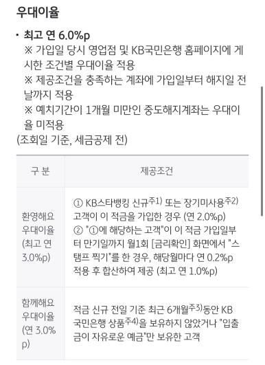 2. KB스타적금 이벤트 우대 이자율 조건
