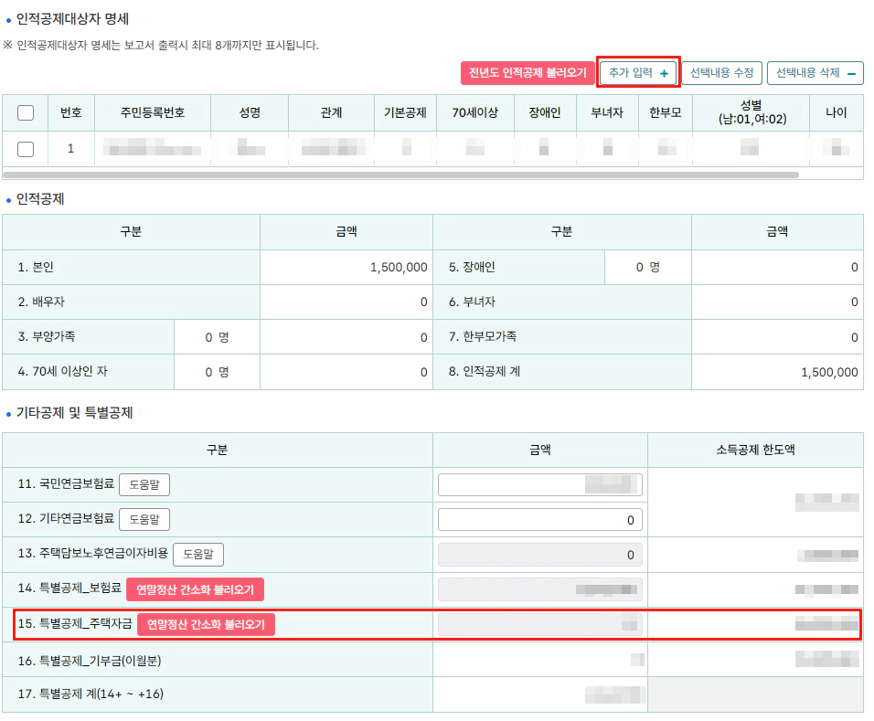 다만, 형제자매의 신용카드 등 사용금액은 기본공제대상자라 하더라도 공제대상 사용금액에 포함되지 않습니다.
